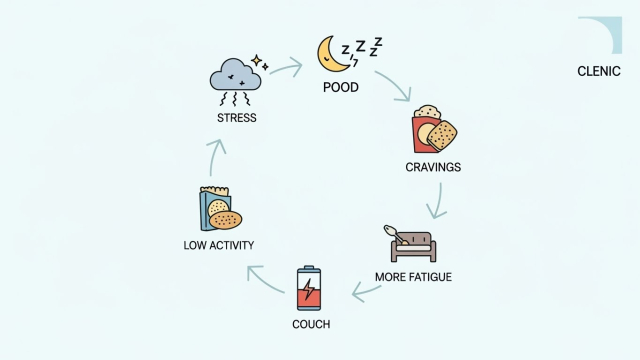 “요즘 자꾸 아프다”는 분들 중 상당수가 스트레스 → 수면 붕괴 → 당/카페인 증가 → 야식으로 이어지는 패턴을 갖고 있습니다. 이럴 때는 의지로 버티기보다 끊는 순서가 중요합니다.